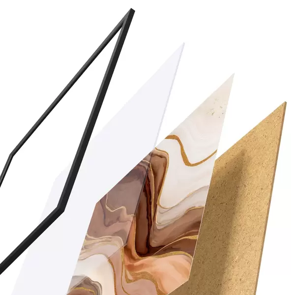 Plakat składa się z ramy, pleksi, wydrukowanego obrazu i podkładu z płyty wiórowej. Plakat można natychmiast zawiesić na ścianie dzięki uchwytom z tyłu.