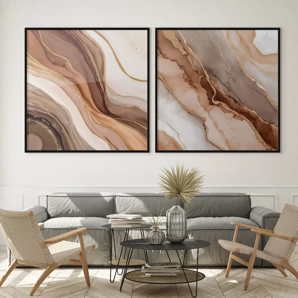 Plakat Dwuczęściowa abstrakcyjna kompozycja z płynnymi przejściami między warstwami d00982