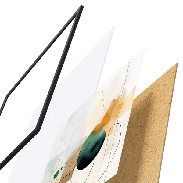 Plakat składa się z ramy, pleksi, wydrukowanego obrazu i podkładu z płyty wiórowej. Plakat można natychmiast zawiesić na ścianie dzięki uchwytom z tyłu.