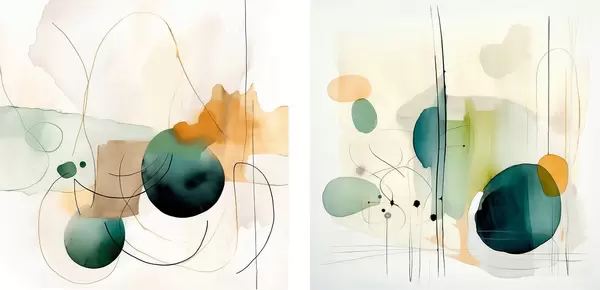 Poster Dwuczęściowa abstrakcyjna kompozycja z delikatnymi plamami koloru Nr d00985