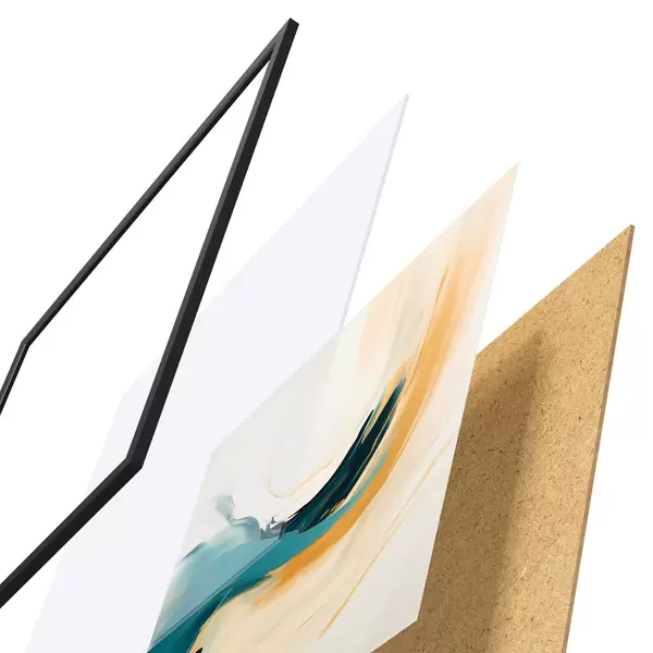 Plakat składa się z ramy, pleksi, wydrukowanego obrazu i podkładu z płyty wiórowej. Plakat można natychmiast zawiesić na ścianie dzięki uchwytom z tyłu.