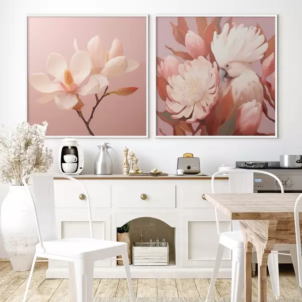 Poster Kompozycja kwiatowa z ptakiem w artystycznym stylu ilustracji Nr d00994
