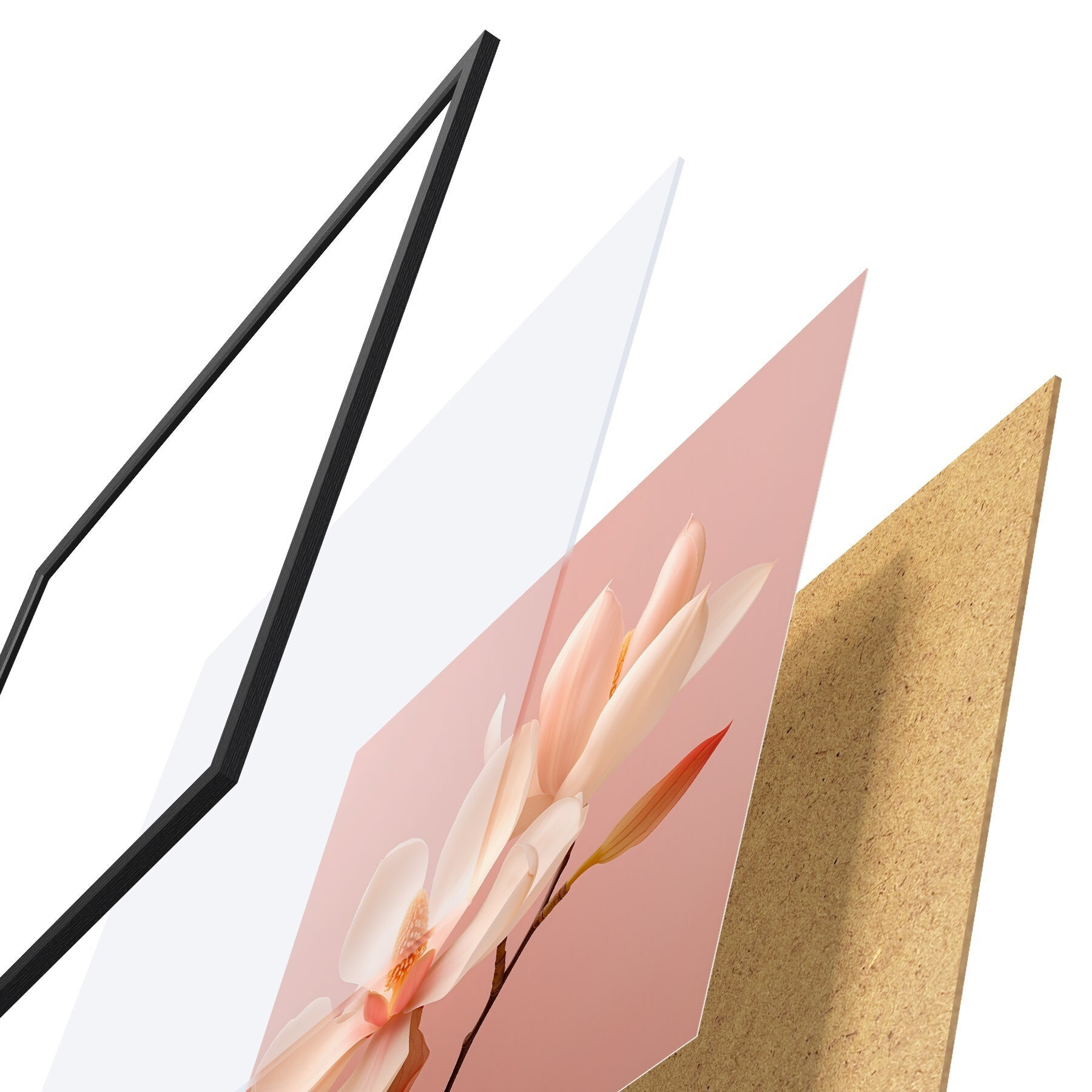 Plakat składa się z ramy, pleksi, wydrukowanego obrazu i podkładu z płyty wiórowej. Plakat można natychmiast zawiesić na ścianie dzięki uchwytom z tyłu.