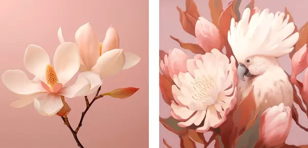 Plakat Kompozycja kwiatowa z ptakiem w artystycznym stylu ilustracji d00994