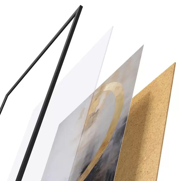 Plakat składa się z ramy, pleksi, wydrukowanego obrazu i podkładu z płyty wiórowej. Plakat można natychmiast zawiesić na ścianie dzięki uchwytom z tyłu.