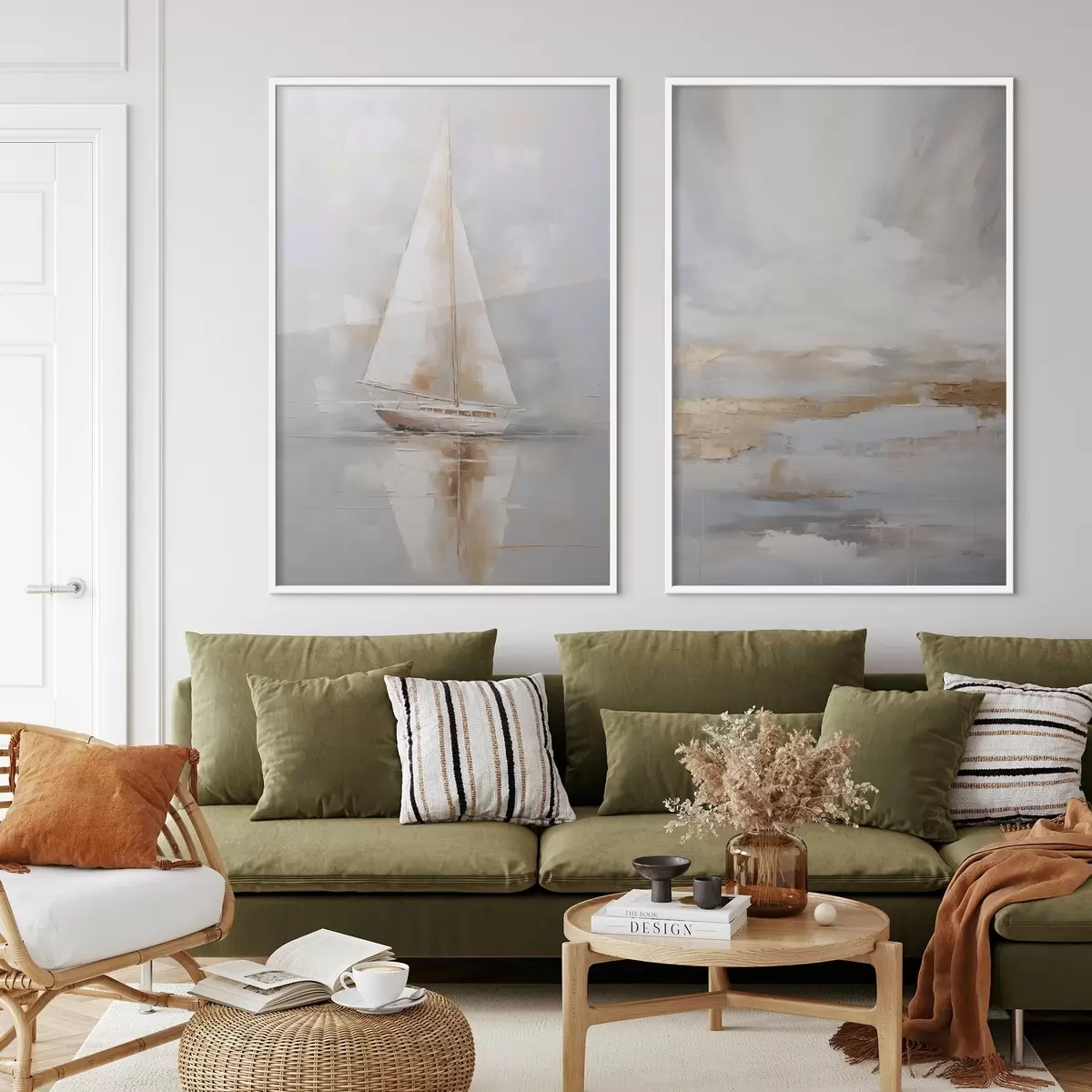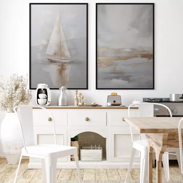 Poster Żaglówka i abstrakcyjna kompozycja imitująca obraz Nr d00999