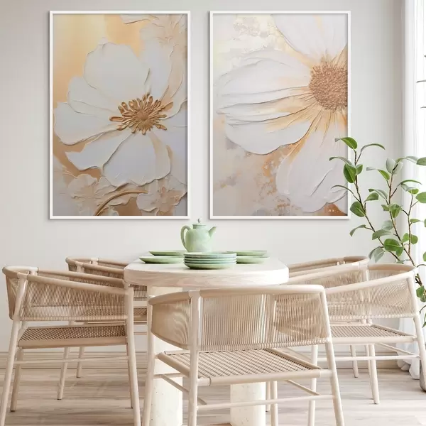 Poster Biały kwiat o delikatnych płatkach, teksturowane abstrakcyjne tło, elegancka, dekoracyjna sztuka Nr d01006
