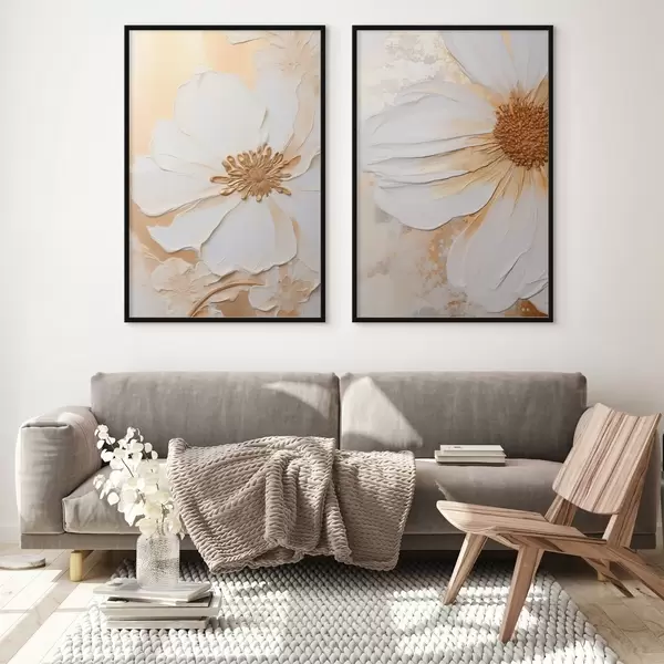 Poster Biały kwiat o delikatnych płatkach, teksturowane abstrakcyjne tło, elegancka, dekoracyjna sztuka Nr d01006