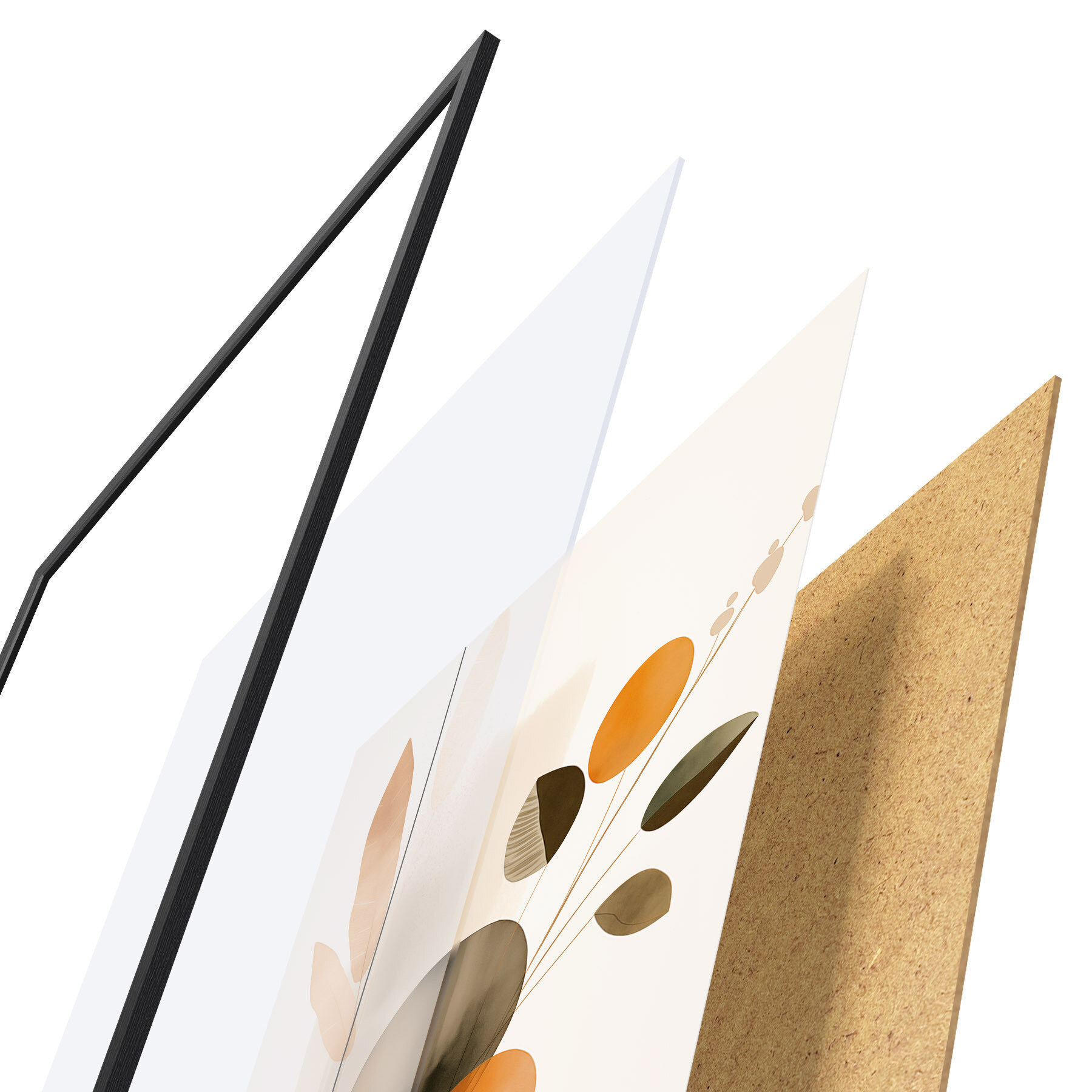 Plakat składa się z ramy, pleksi, wydrukowanego obrazu i podkładu z płyty wiórowej. Plakat można natychmiast zawiesić na ścianie dzięki uchwytom z tyłu.