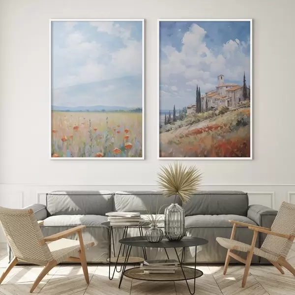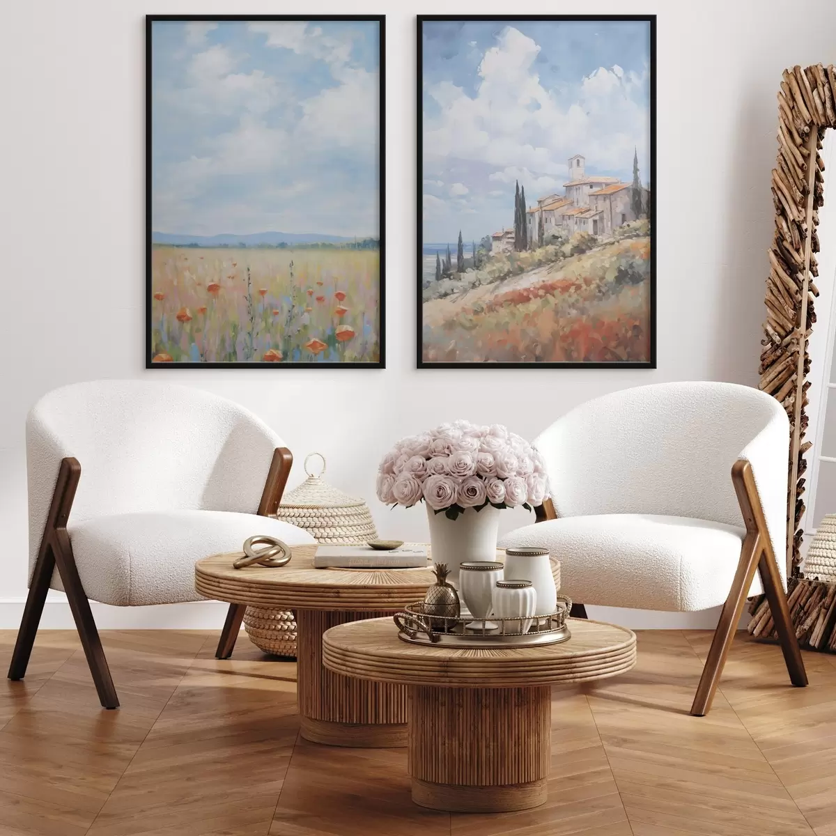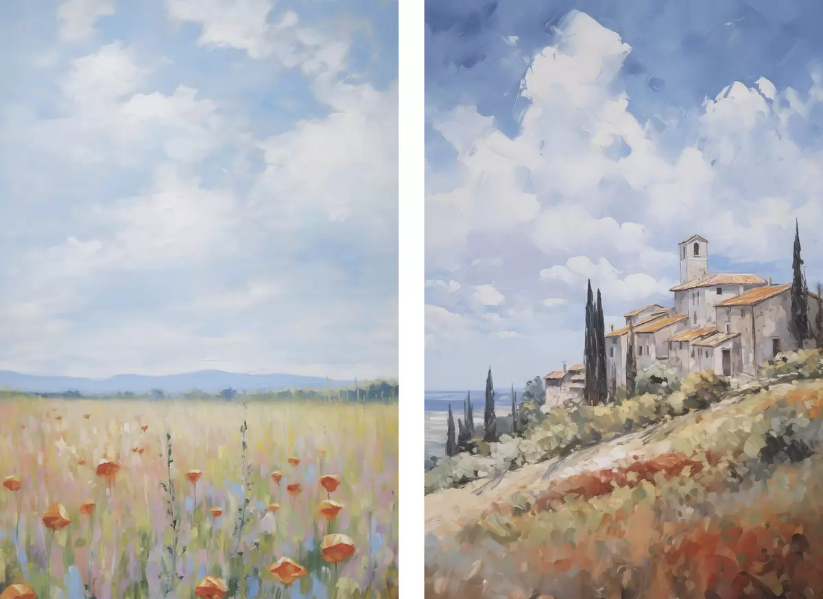 Plakat Imitacja malarstwa przedstawiającego wiejski krajobraz d01018