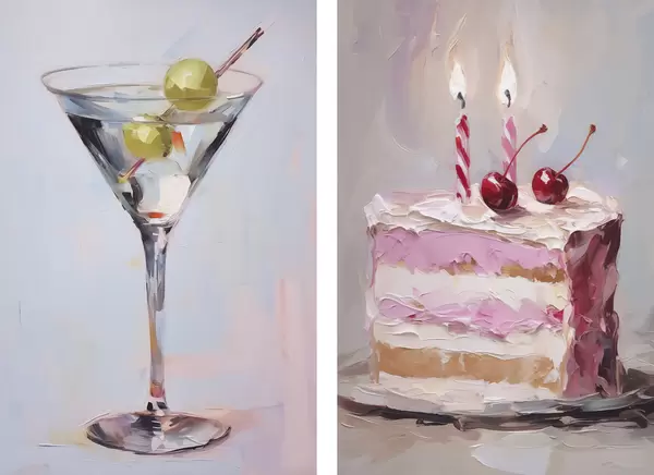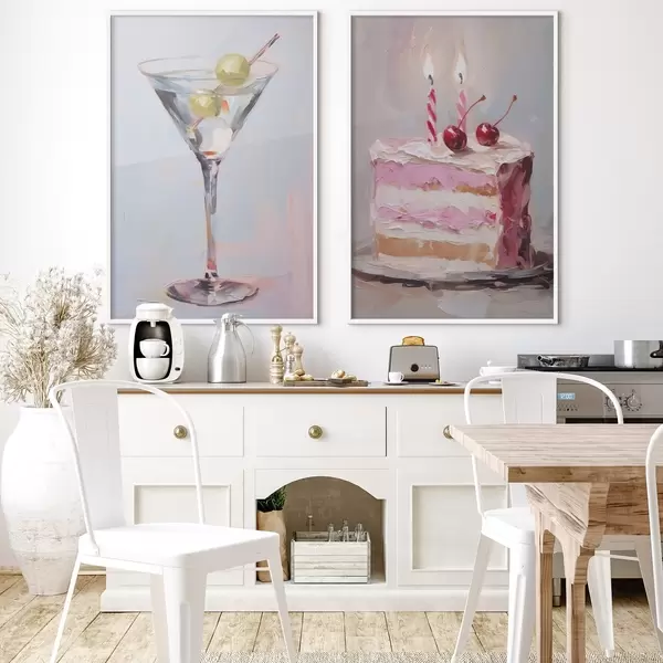Poster Szklanka z napojem i kawałkiem ciasta – imitacja obrazu Nr d01019
