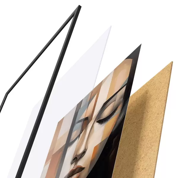 Plakat składa się z ramy, pleksi, wydrukowanego obrazu i podkładu z płyty wiórowej. Plakat można natychmiast zawiesić na ścianie dzięki uchwytom z tyłu.
