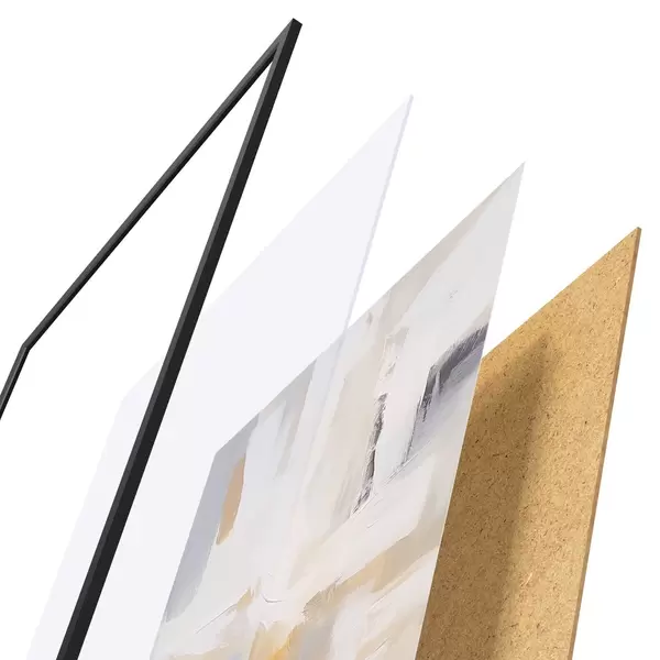 Plakat składa się z ramy, pleksi, wydrukowanego obrazu i podkładu z płyty wiórowej. Plakat można natychmiast zawiesić na ścianie dzięki uchwytom z tyłu.