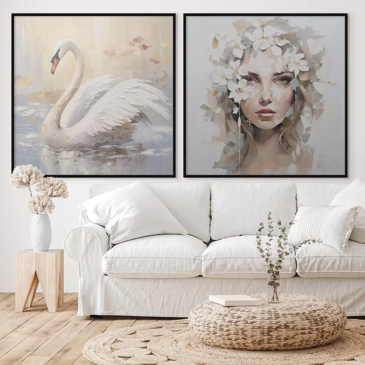 Plakat Łabędź i portret dziewczyny, imitacja obrazu d01030