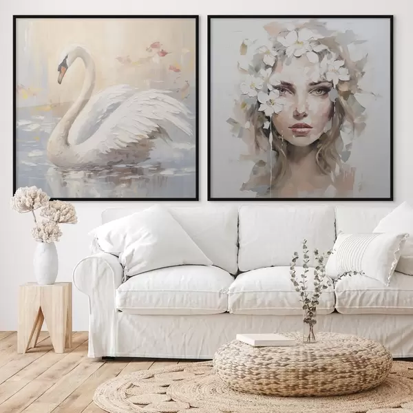 Poster Łabędź i portret dziewczyny, imitacja obrazu Nr d01030
