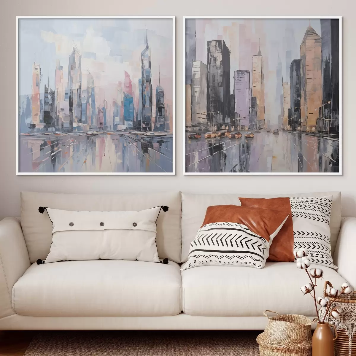 Każdy obraz jest owinięty folią stretch i zapakowany w karton wysyłkowy