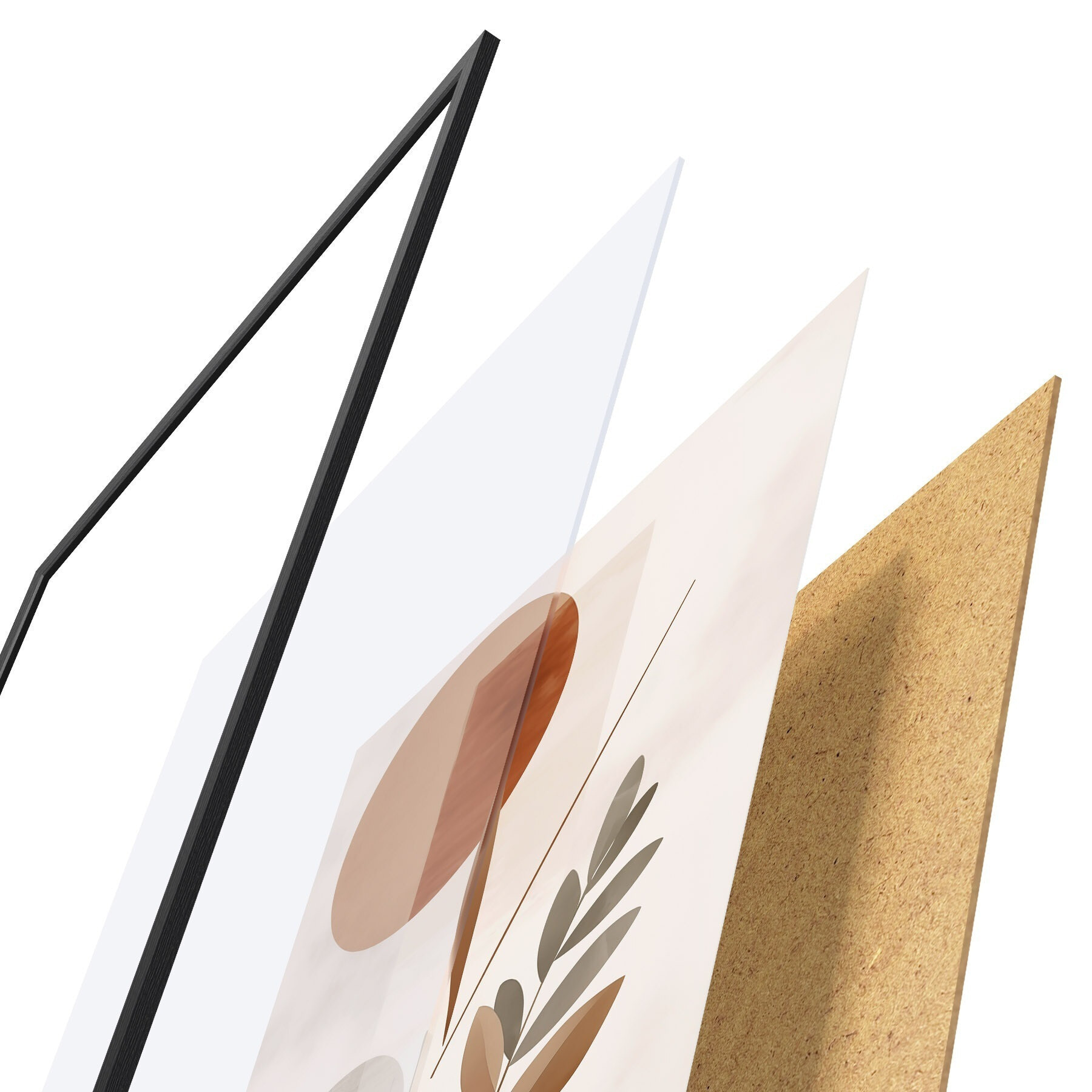 Plakat składa się z ramy, pleksi, wydrukowanego obrazu i podkładu z płyty wiórowej. Plakat można natychmiast zawiesić na ścianie dzięki uchwytom z tyłu.