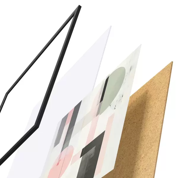 Plakat składa się z ramy, pleksi, wydrukowanego obrazu i podkładu z płyty wiórowej. Plakat można natychmiast zawiesić na ścianie dzięki uchwytom z tyłu.