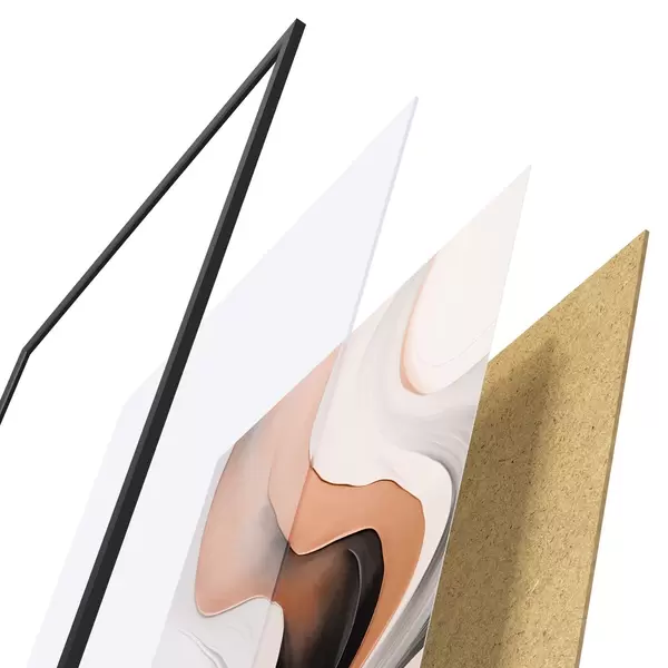 Plakat składa się z ramy, pleksi, wydrukowanego obrazu i podkładu z płyty wiórowej. Plakat można natychmiast zawiesić na ścianie dzięki uchwytom z tyłu.