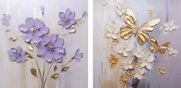 Plakat Obraz imitujący motyle i kwiaty d01046