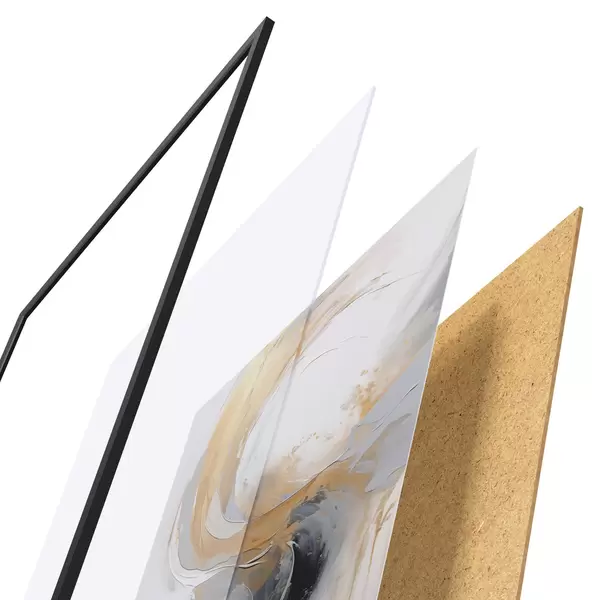 Plakat składa się z ramy, pleksi, wydrukowanego obrazu i podkładu z płyty wiórowej. Plakat można natychmiast zawiesić na ścianie dzięki uchwytom z tyłu.