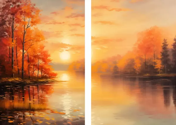Poster Jesienny las na tle zachodu słońca Nr d01051
