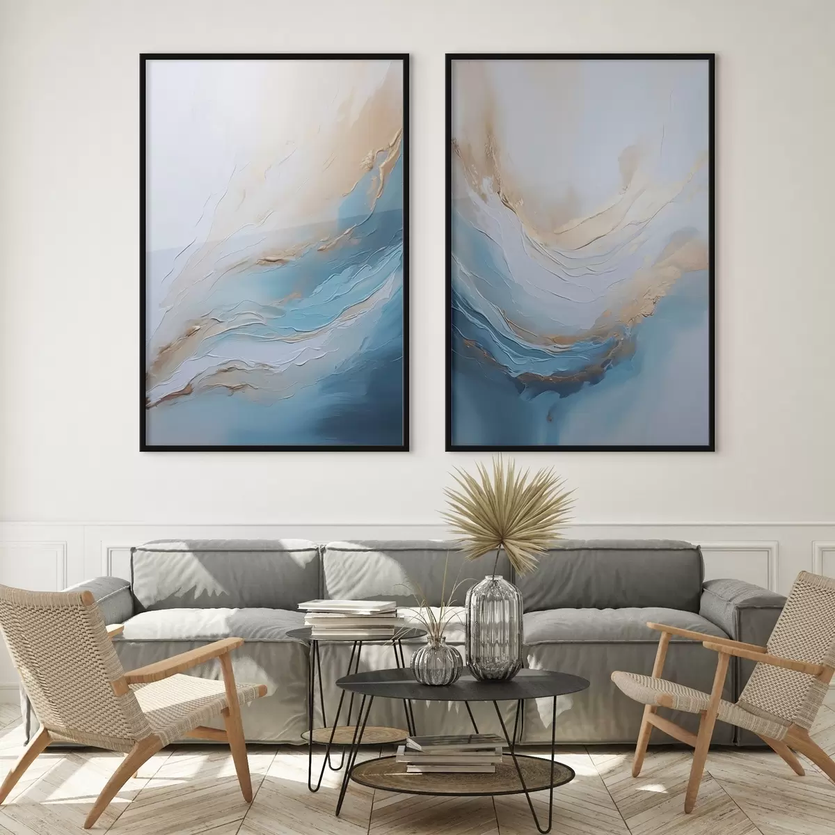 Plakat składa się z ramy, pleksi, wydrukowanego obrazu i podkładu z płyty wiórowej. Plakat można natychmiast zawiesić na ścianie dzięki uchwytom z tyłu.
