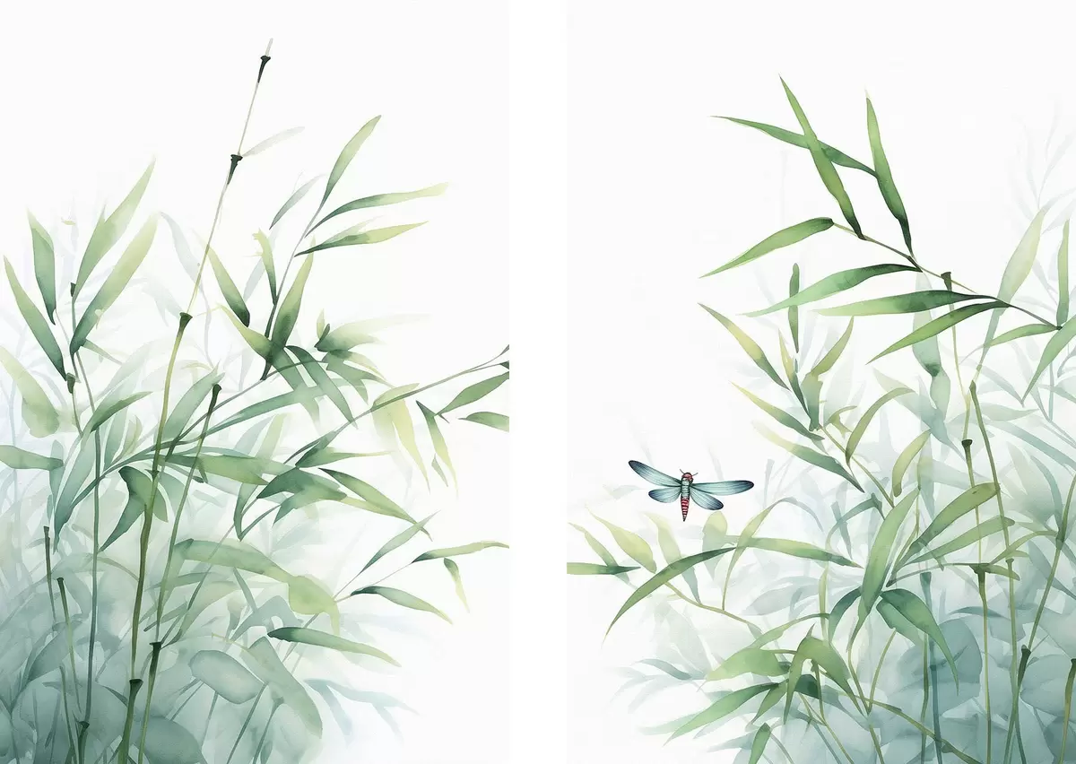 Poster Rośliny bambusowe, imitacja akwareli Nr d01062