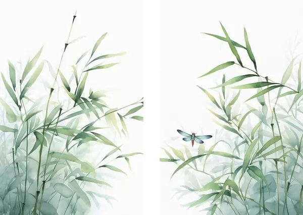 Poster Rośliny bambusowe, imitacja akwareli Nr d01062