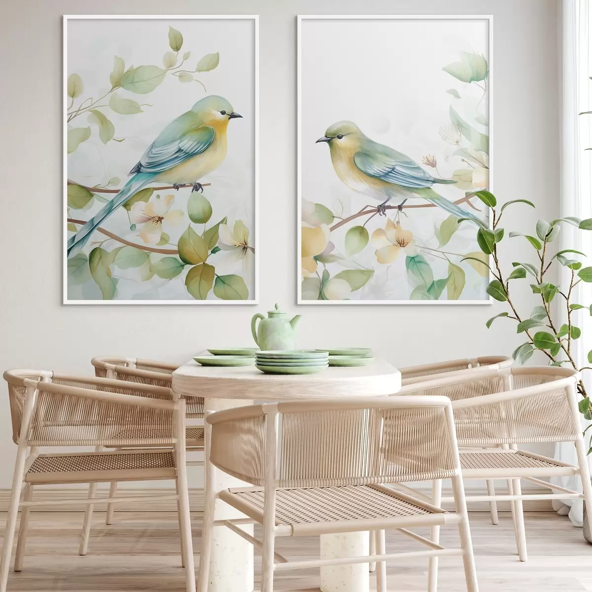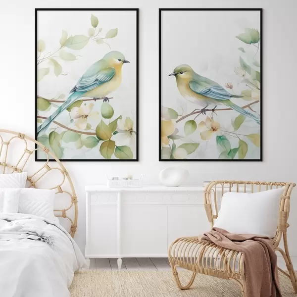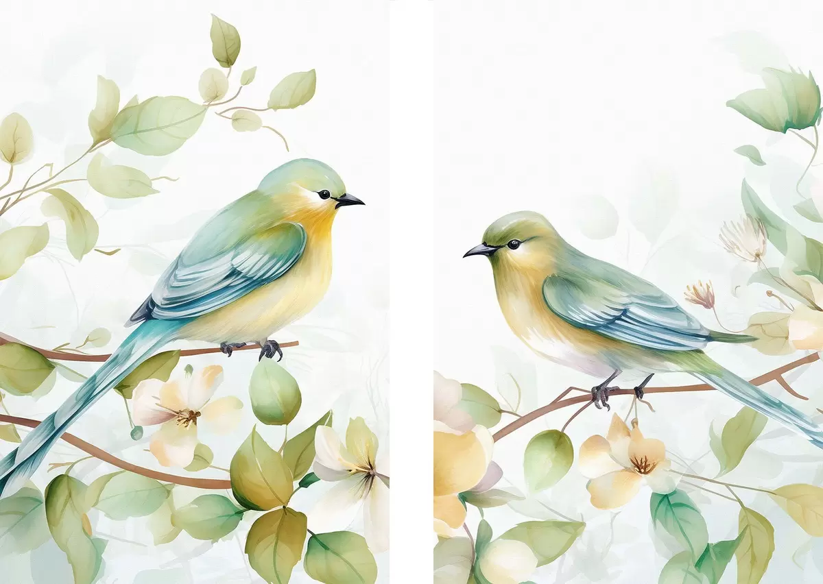 Poster Dwie sikorki na gałęziach jaśminu Nr d01069
