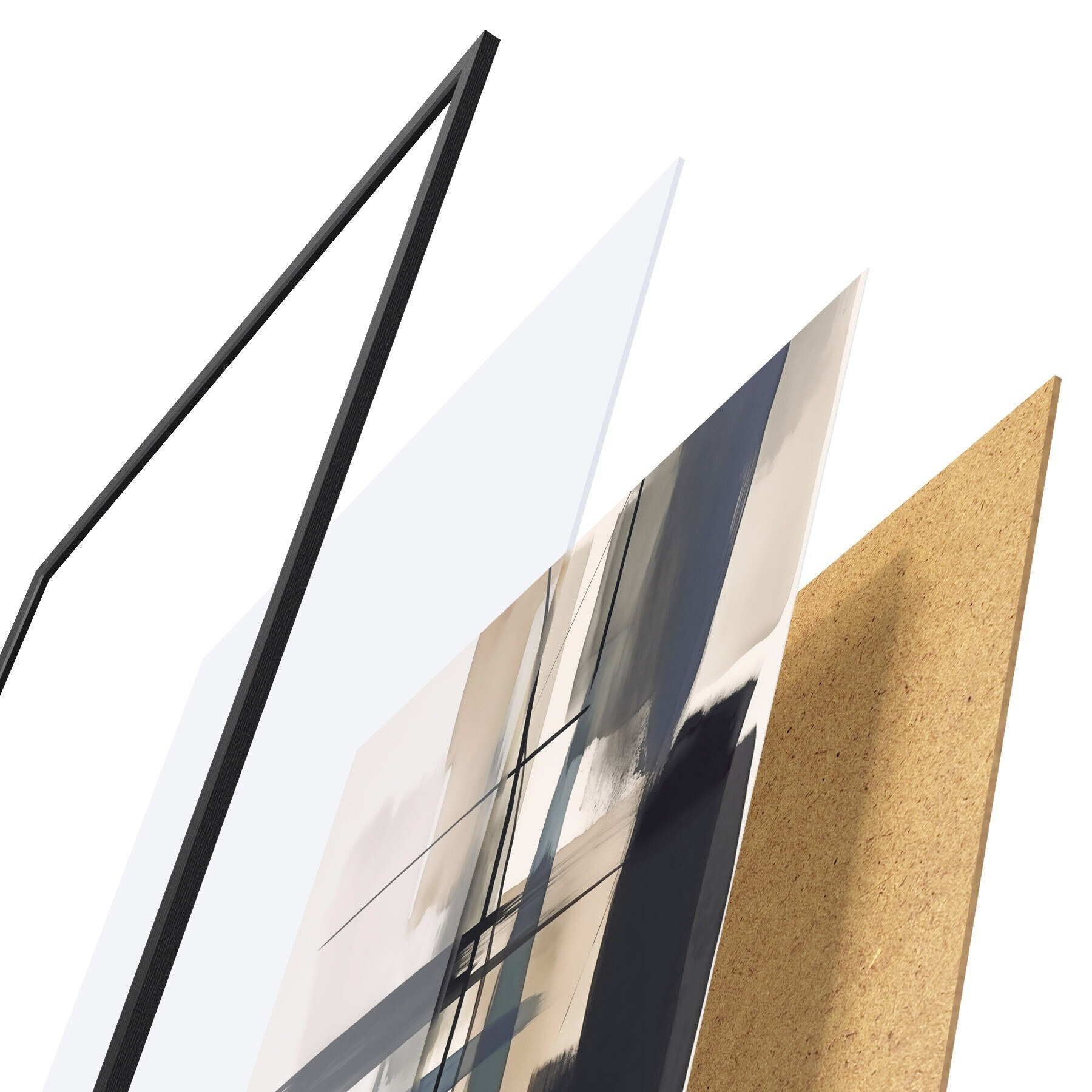 Plakat składa się z ramy, pleksi, wydrukowanego obrazu i podkładu z płyty wiórowej. Plakat można natychmiast zawiesić na ścianie dzięki uchwytom z tyłu.