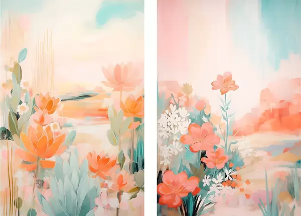 Plakat Motywy kwiatowe w pastelowych odcieniach na tle lekko zamglonej doliny d01085