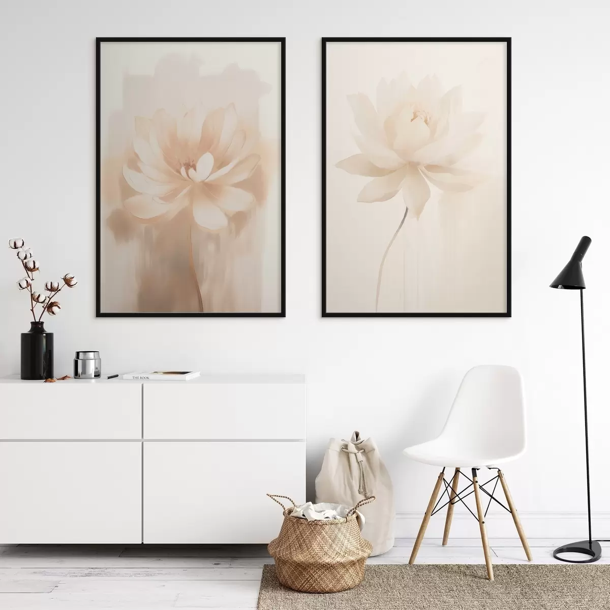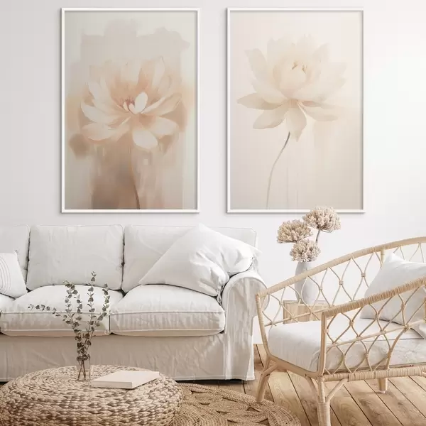 Poster Kompozycja kwiatowa w ciepłych odcieniach beżu z lekkimi pociągnięciami pędzla i przewiewnym tłem Nr d01087