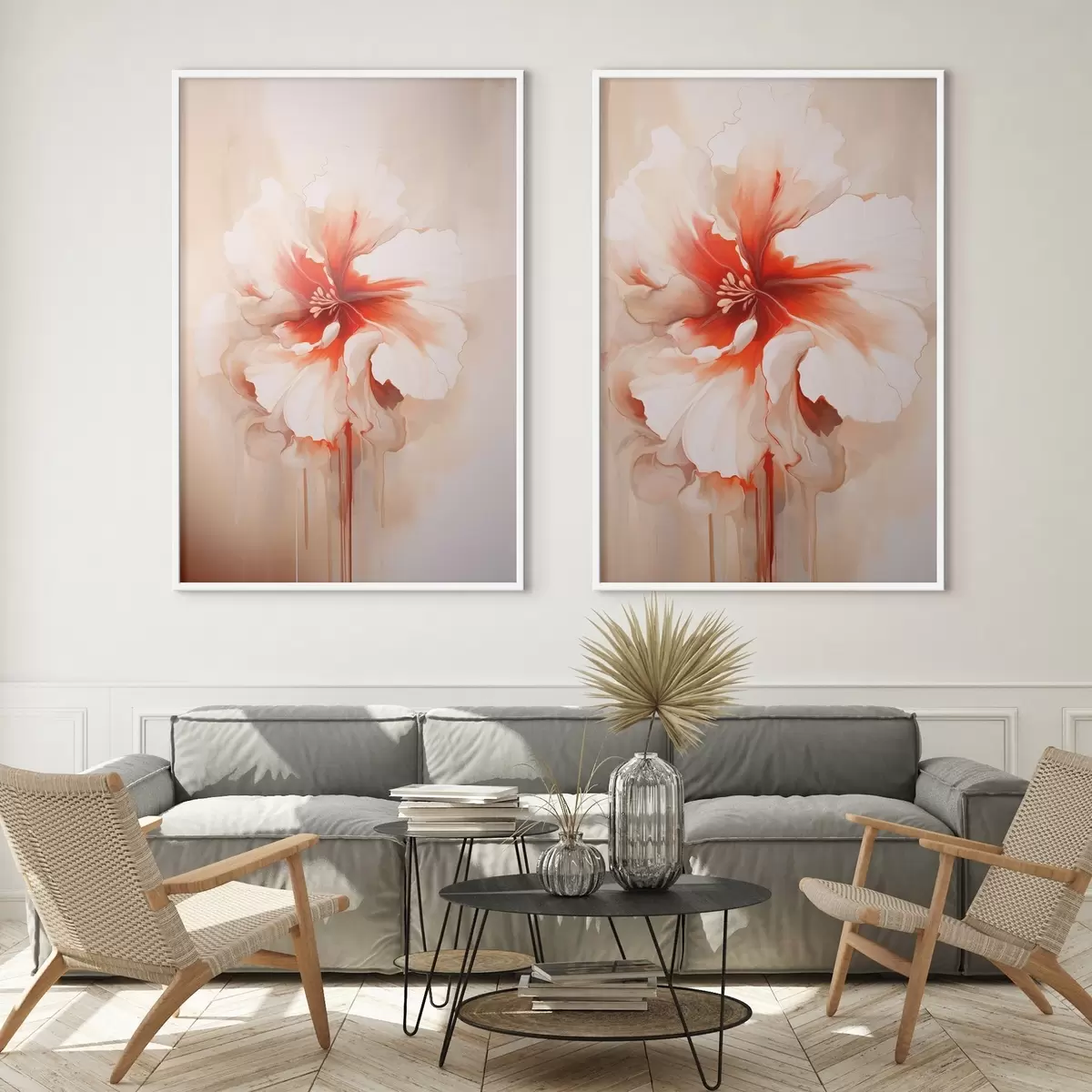 Poster Białe płatki koralowca na abstrakcyjnym tle, spokojna kompozycja Nr d01089