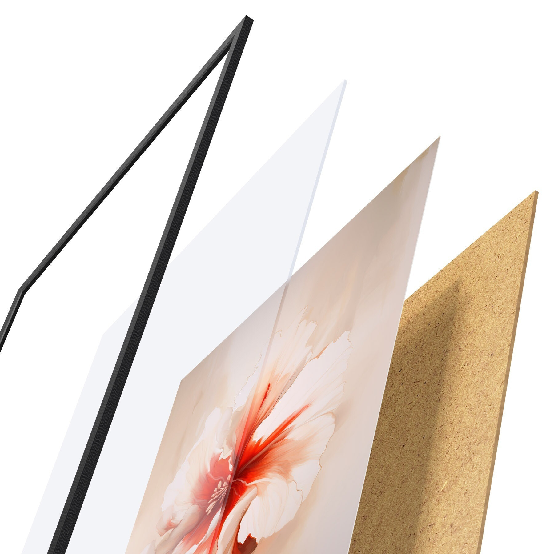 Plakat składa się z ramy, pleksi, wydrukowanego obrazu i podkładu z płyty wiórowej. Plakat można natychmiast zawiesić na ścianie dzięki uchwytom z tyłu.