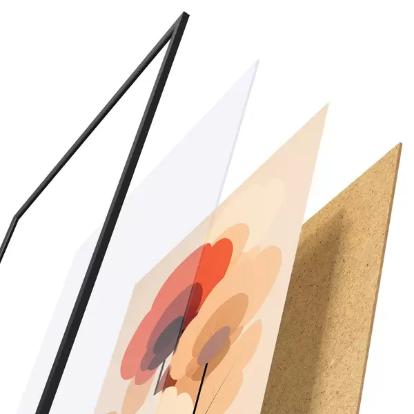 Plakat składa się z ramy, pleksi, wydrukowanego obrazu i podkładu z płyty wiórowej. Plakat można natychmiast zawiesić na ścianie dzięki uchwytom z tyłu.