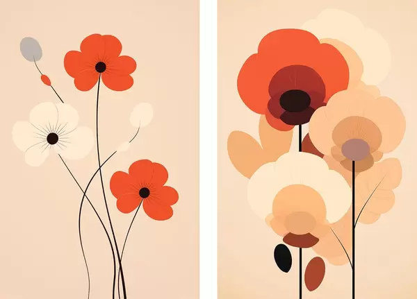 Poster Minimalistyczny dyptyk kwiatowy w ciepłych odcieniach beżu i koralowca z graficznymi liniami Nr d01090