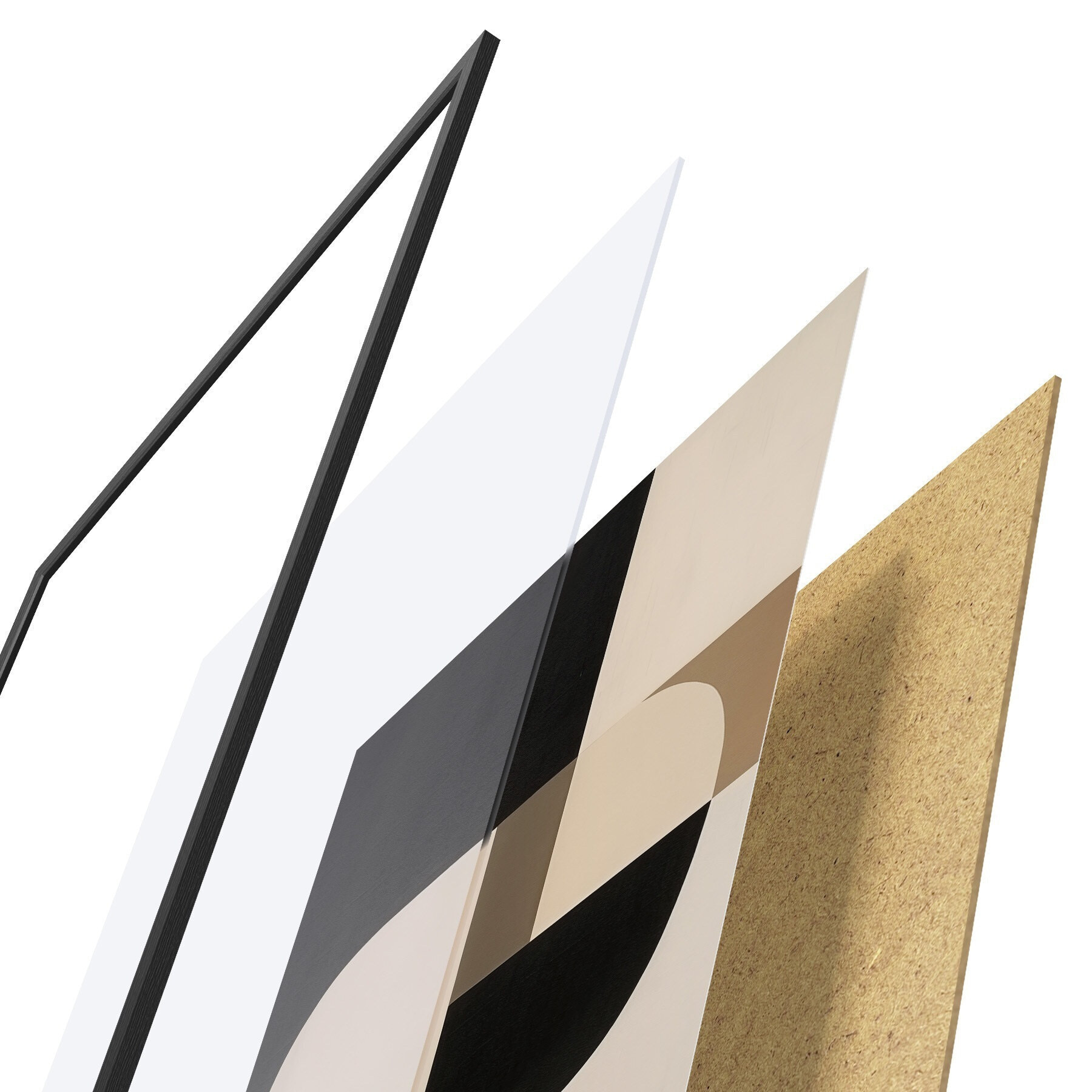 Plakat składa się z ramy, pleksi, wydrukowanego obrazu i podkładu z płyty wiórowej. Plakat można natychmiast zawiesić na ścianie dzięki uchwytom z tyłu.