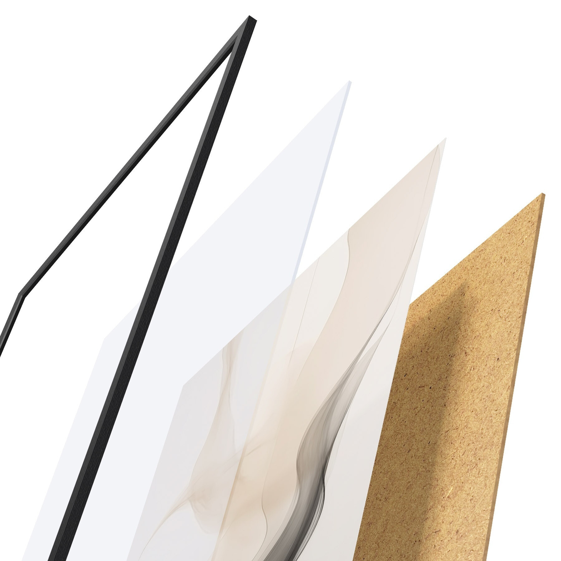 Plakat składa się z ramy, pleksi, wydrukowanego obrazu i podkładu z płyty wiórowej. Plakat można natychmiast zawiesić na ścianie dzięki uchwytom z tyłu.
