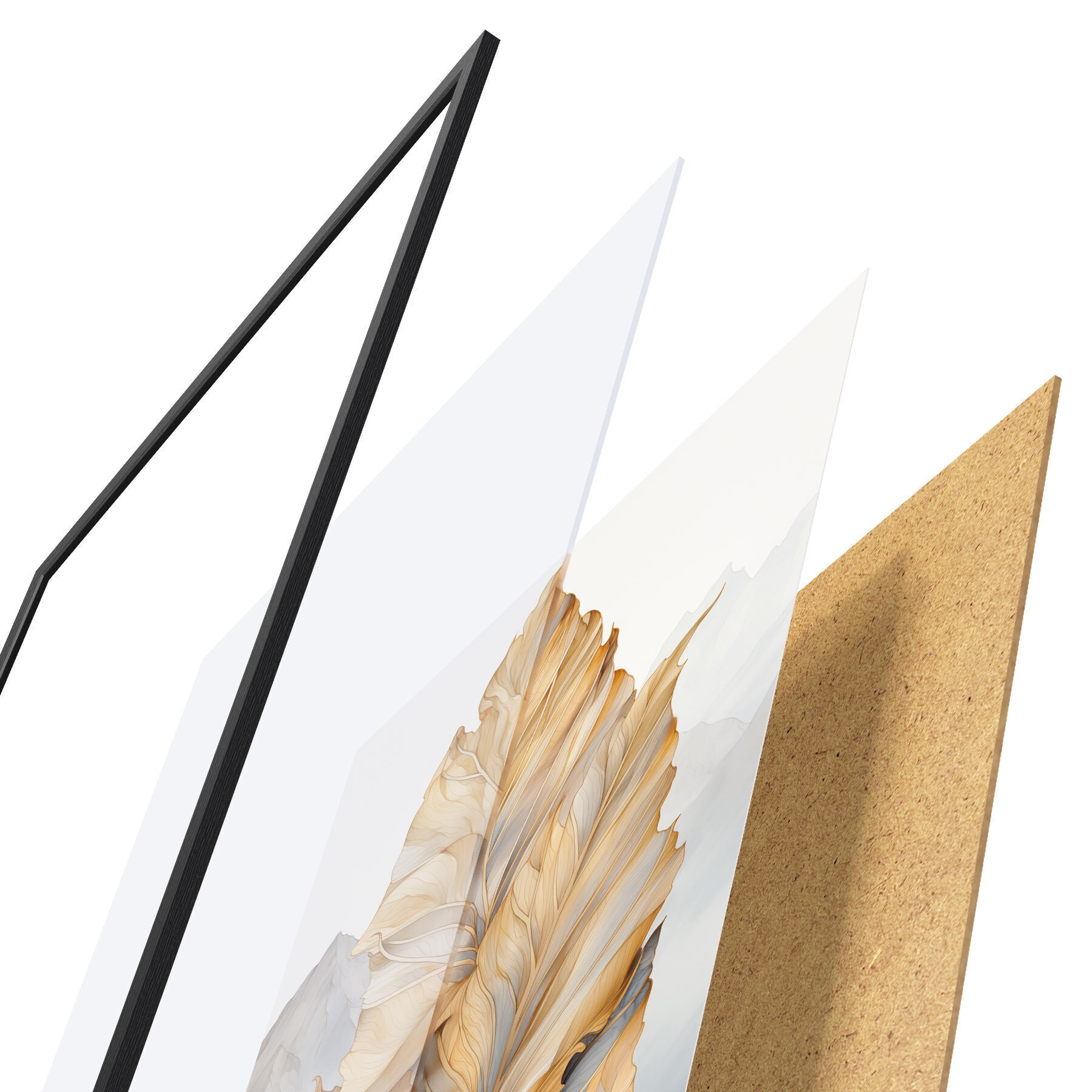 Plakat składa się z ramy, pleksi, wydrukowanego obrazu i podkładu z płyty wiórowej. Plakat można natychmiast zawiesić na ścianie dzięki uchwytom z tyłu.