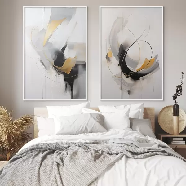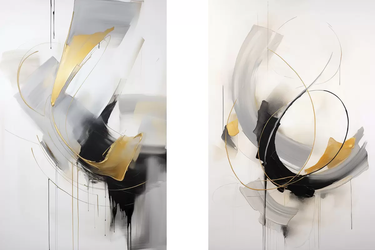 Plakat Obraz abstrakcyjny z imitacją żółtych, czarnych i białych pociągnięć pędzla, dynamiczne linie d01125