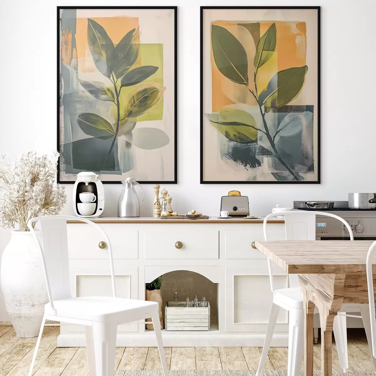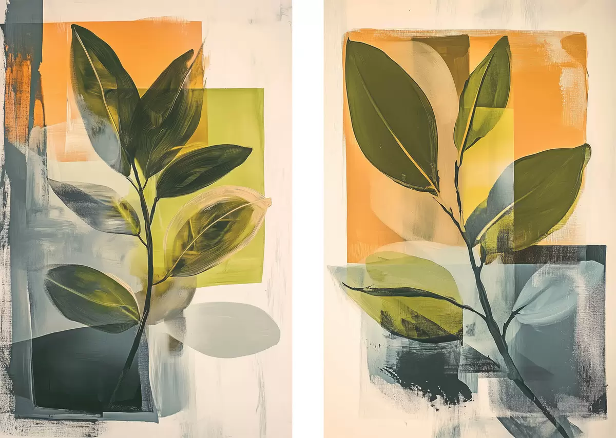 Poster Gałęzie z liśćmi na abstrakcyjnym tle Nr d01132