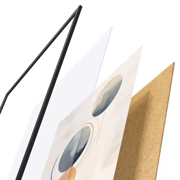 Plakat składa się z ramy, pleksi, wydrukowanego obrazu i podkładu z płyty wiórowej. Plakat można natychmiast zawiesić na ścianie dzięki uchwytom z tyłu.
