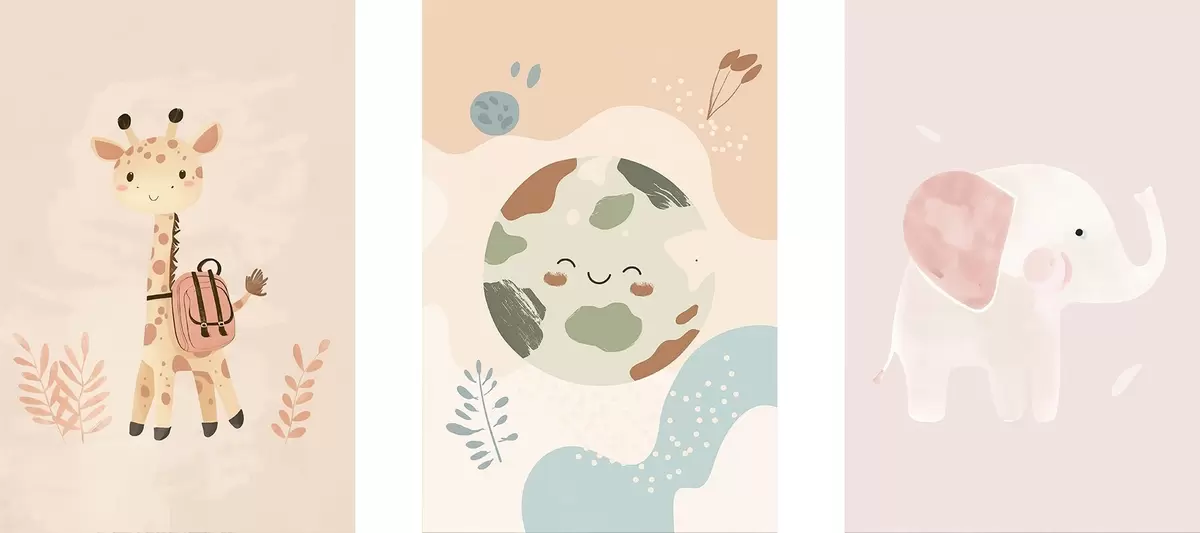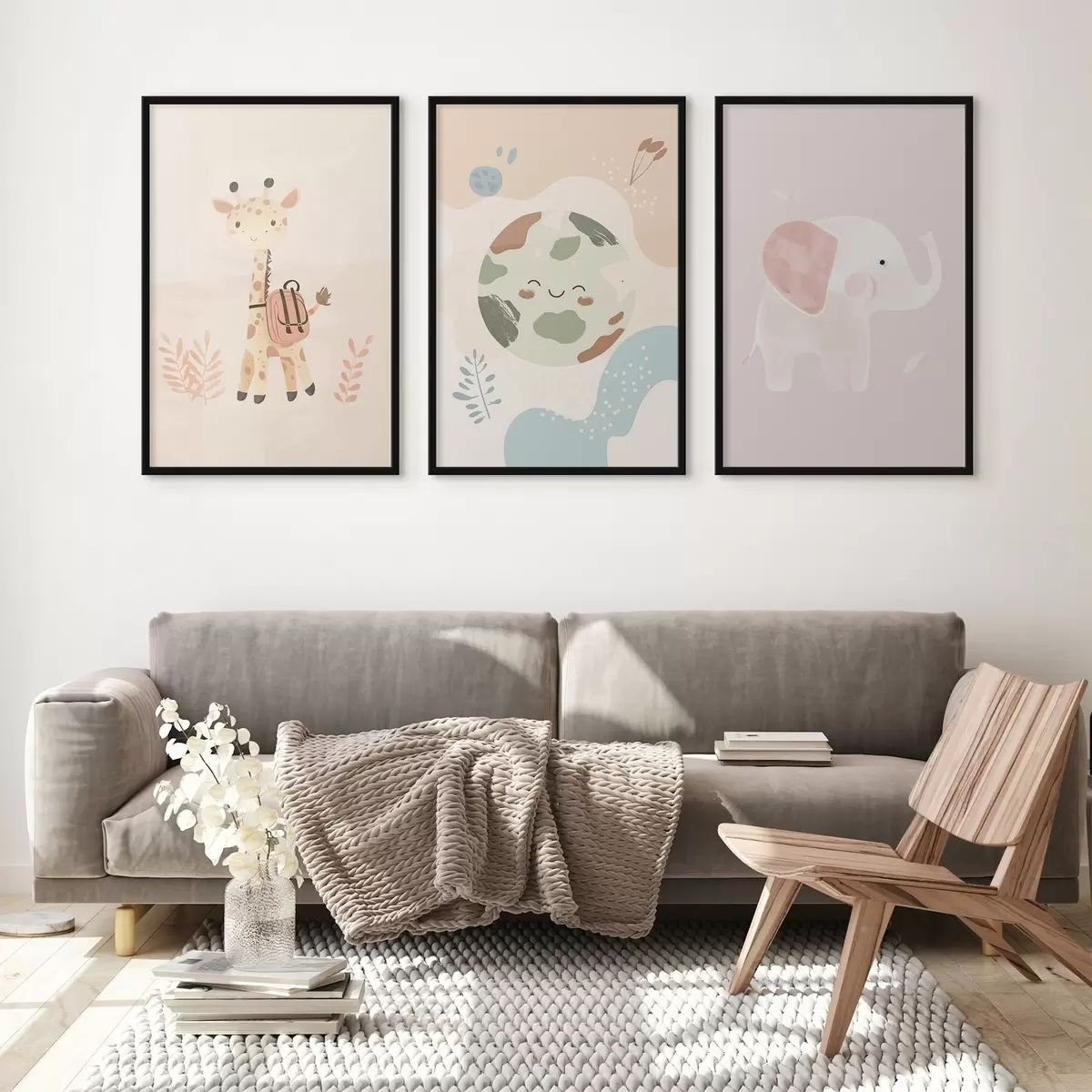 Poster Ziemia, żyrafa i słoń Nr d01135