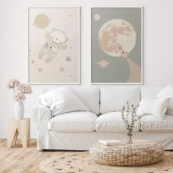 Poster Kosmonauta Niedźwiedź i Księżyc Nr d01138