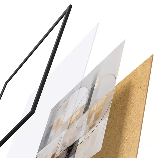 Plakat składa się z ramy, pleksi, wydrukowanego obrazu i podkładu z płyty wiórowej. Plakat można natychmiast zawiesić na ścianie dzięki uchwytom z tyłu.