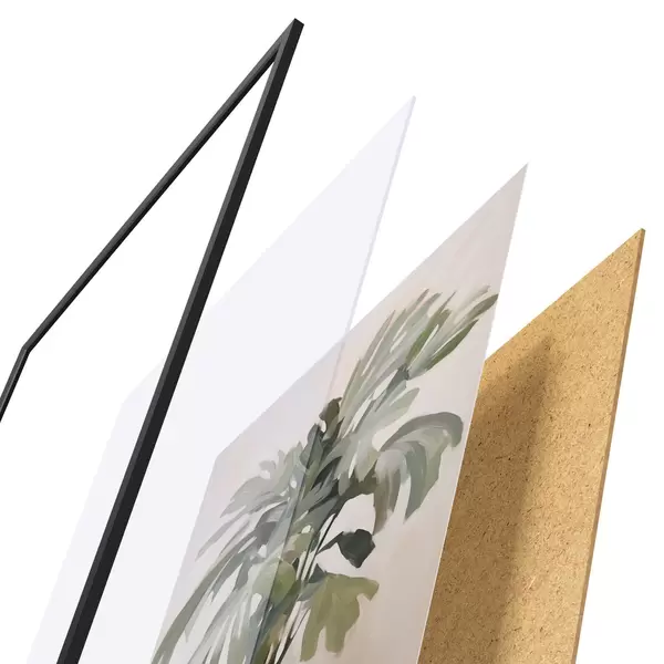 Plakat składa się z ramy, pleksi, wydrukowanego obrazu i podkładu z płyty wiórowej. Plakat można natychmiast zawiesić na ścianie dzięki uchwytom z tyłu.