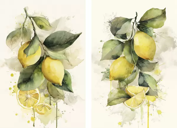 Poster gałąź w stylu akwareli z cytrynami Nr d01172