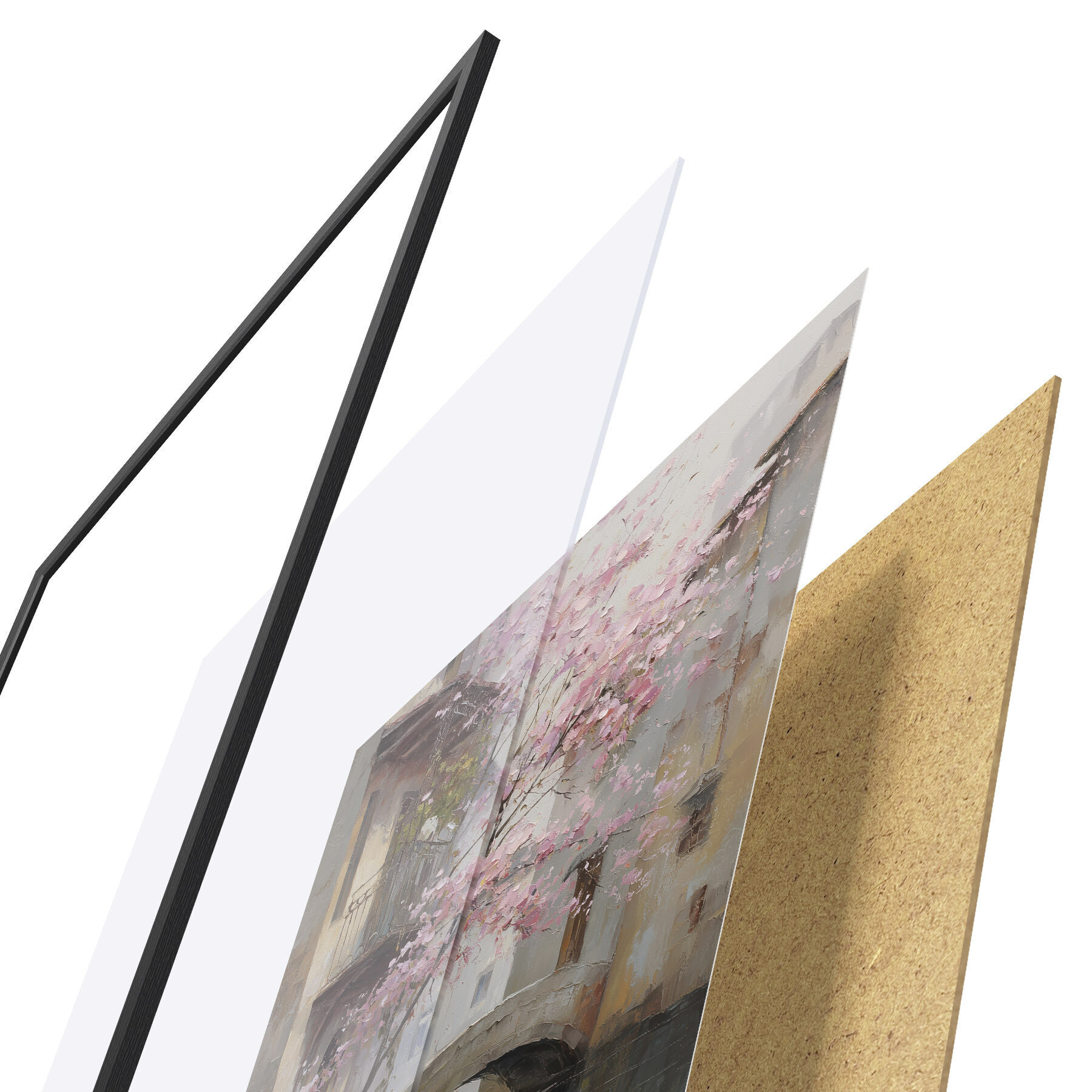 Plakat składa się z ramy, pleksi, wydrukowanego obrazu i podkładu z płyty wiórowej. Plakat można natychmiast zawiesić na ścianie dzięki uchwytom z tyłu.