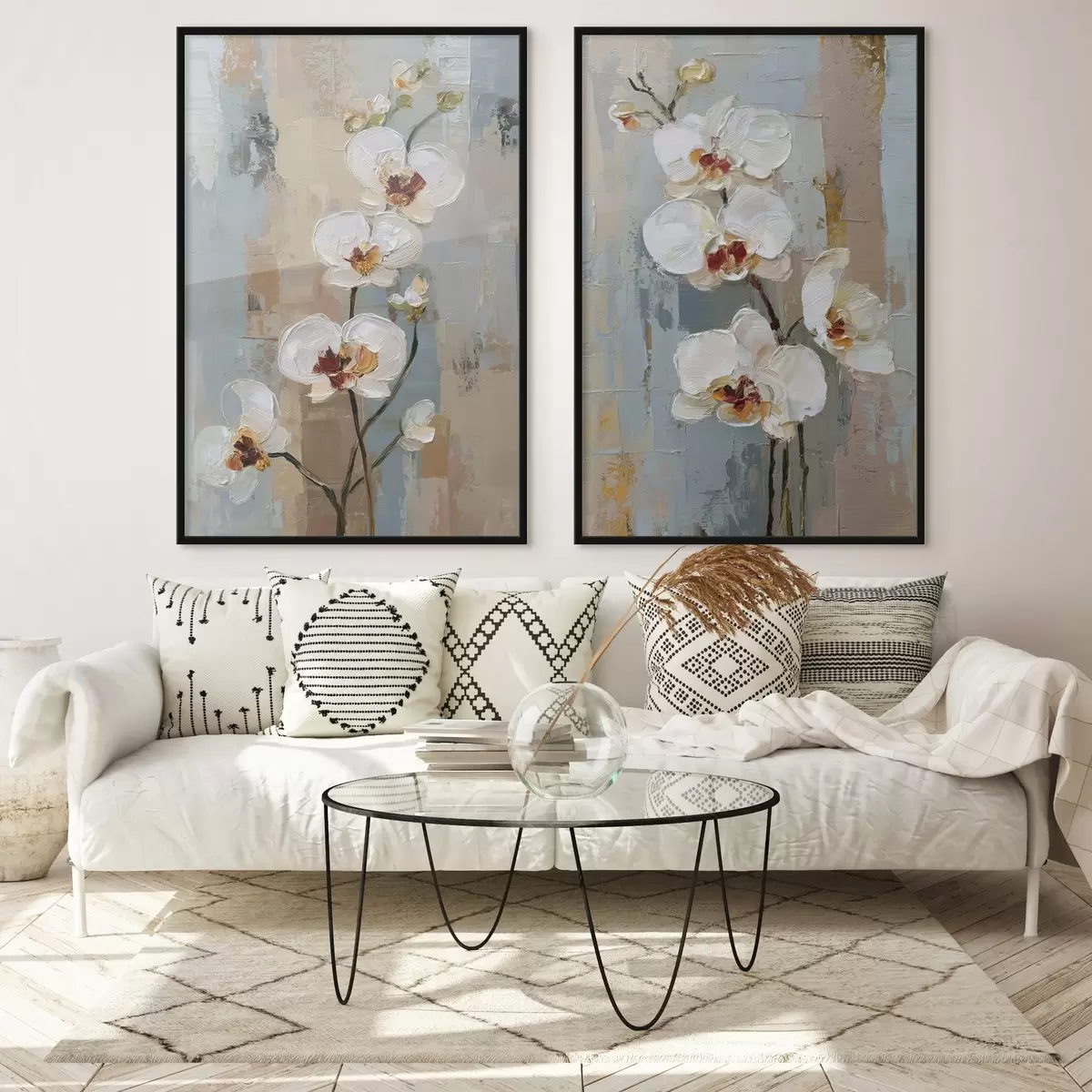 Plakat białe kwiaty orchidei w stylu malarstwa olejnego d01175